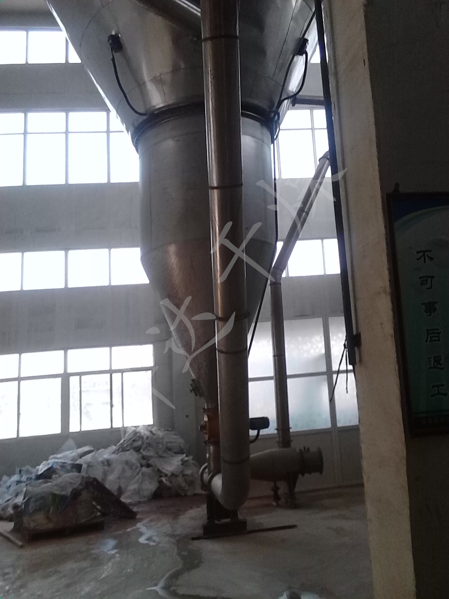 物料由蠕動泵輸送到安裝在干燥塔頂部的離心霧化器內,在高速離心力的作用下,霧化器將料液霧化成細小的霧滴群,使料液的表面積大大增加,然后在與熱空氣充分交換的情況下,水份迅速蒸發(fā),干燥成小顆粒,隨尾氣進入旋風除塵器,后經引風機經水沫除塵排出。整個系統(tǒng)為全封閉式。衛(wèi)生指標高,產品外觀好,速溶性和流動性好,色澤一致等優(yōu)點。